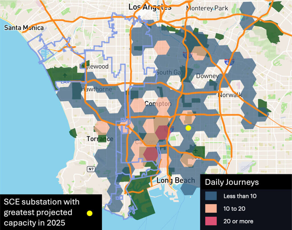 Currently, drayage truck charging stations are mostly located in ports and depots. If stakeholders continue to prioritize installing chargers in these areas, power demand will put considerable pressure on local grids, which will likely not be able to reliably support trucks’ growing charging needs, creating grid bottlenecks. These bottlenecks can have significant logistical and financial repercussions.