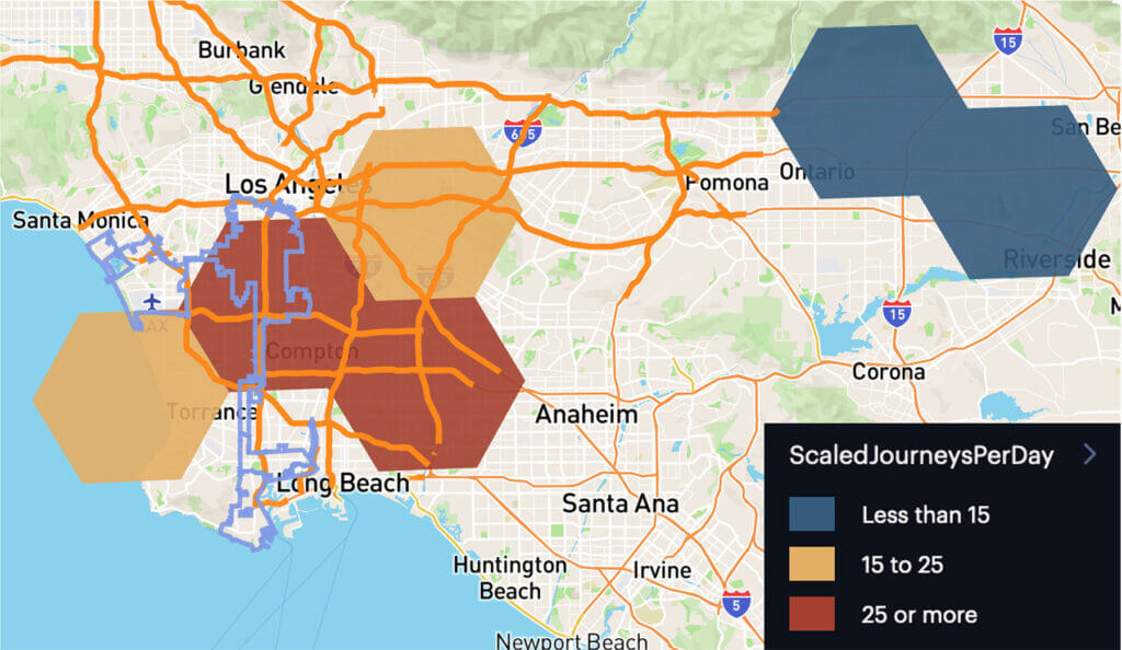 RMI and the Mission Possible Partnership analysed drayage trucking data in Los Angeles (LA) County: to provide stakeholders with a clear understanding of where trucks typically go before and after passing through the Port of LA. The analysis also provides information about where new charging stations should be located.