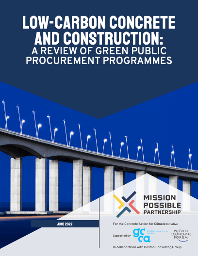 A new report explores the activities of six countries (Sweden, Germany, France, the Netherlands, UK, and US) that are leading the charge to develop rules for low-carbon concrete and construction procurement. This Mission Possible Partnership Report by the World Economic Forum and the Global Cement and Concrete Association (GCCA) in collaboration with Boston Consulting Group (BCG) is based on interviews with construction and procurement experts from the public and private sectors in the countries we studied. The report examines the tools and regulations that have been adopted to support the shift to low-carbon concrete.